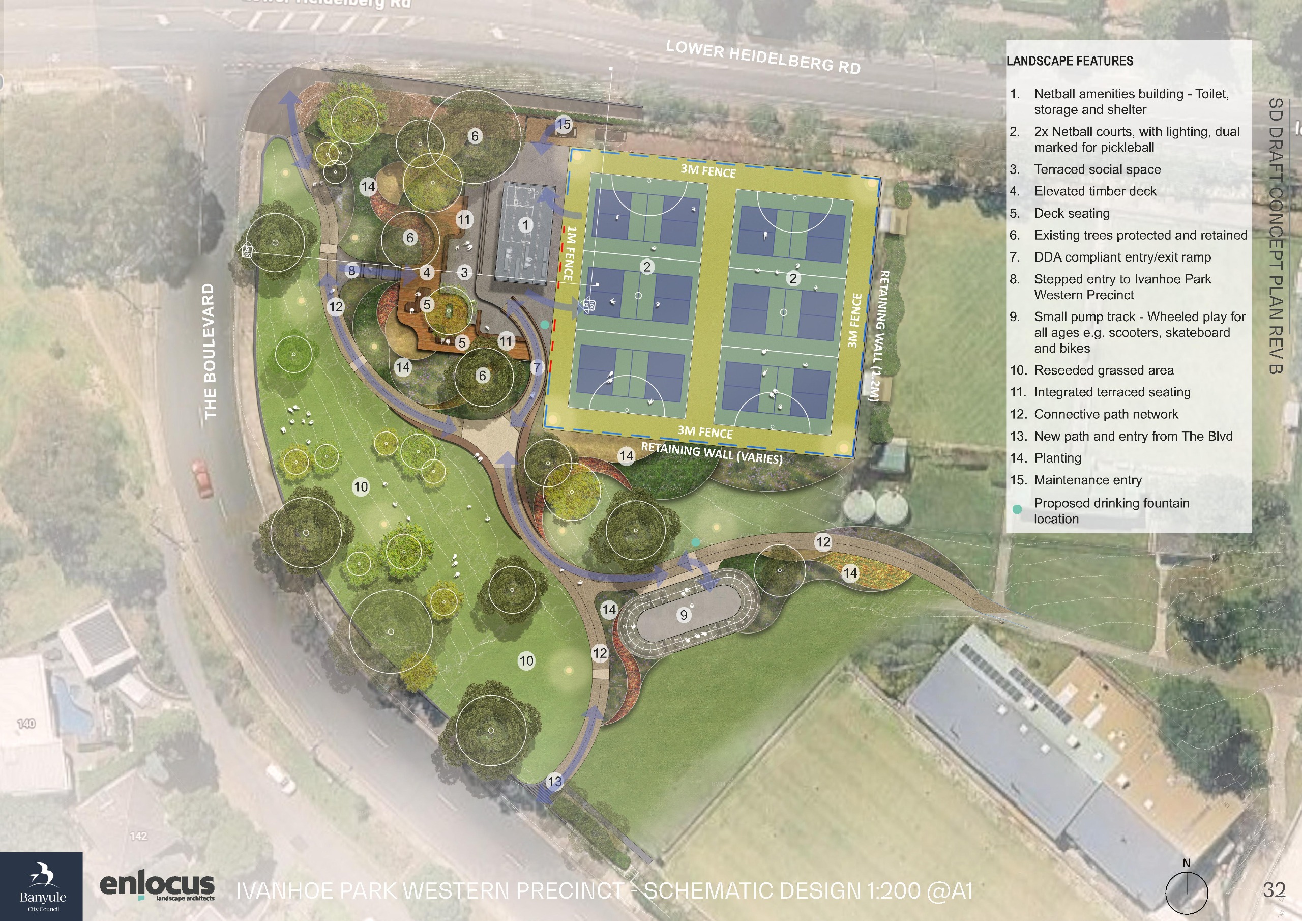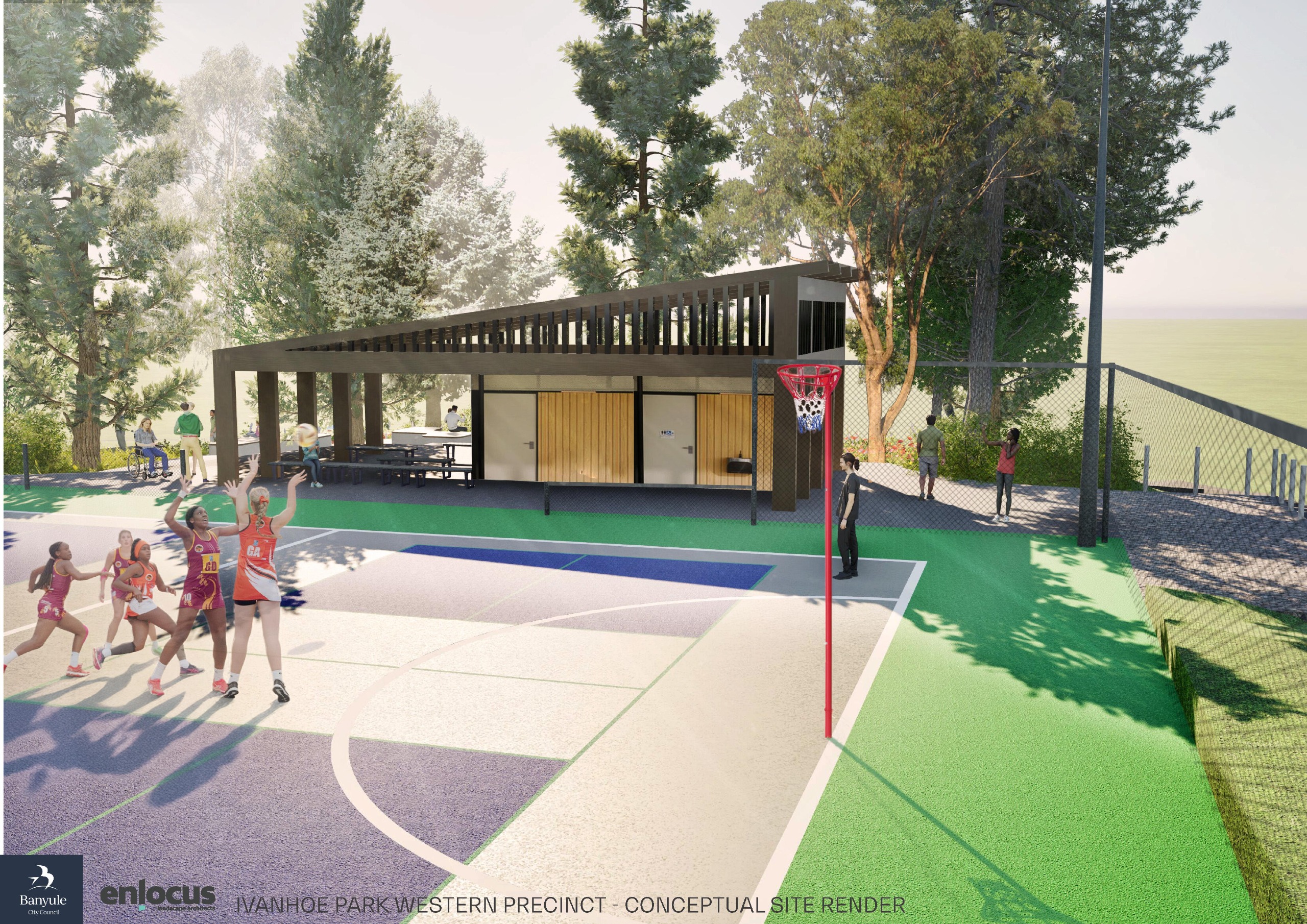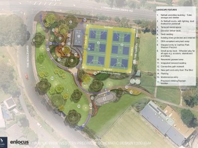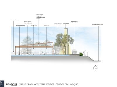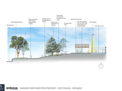 Last year, the community helped shape a landscape plan to guide future upgrades at Ivanhoe Park. The Western precinct, the land closer to the corner of Lower Heidelberg Road and the Boulevard intersection, is a priority area in Council's Ivanhoe Sports Precinct Plan, which also includes converting existing tennis courts to netball courts and adding a small amenities building.